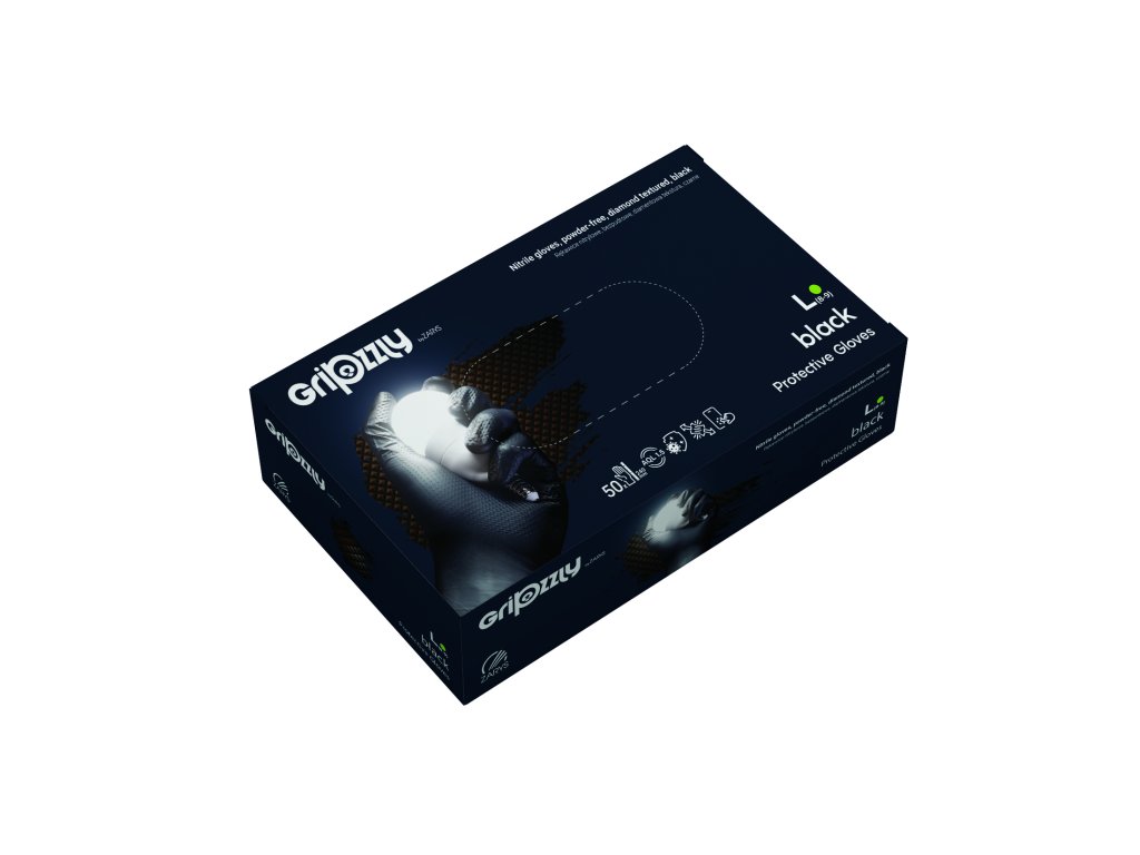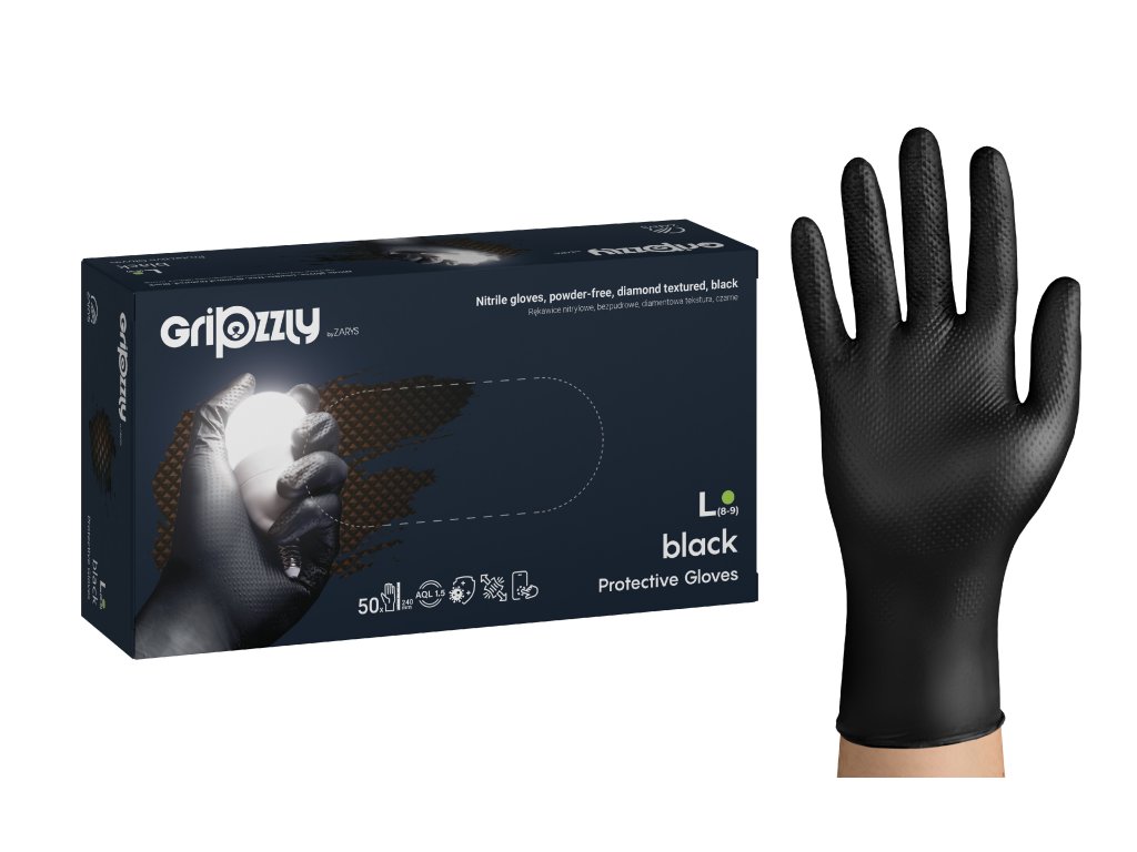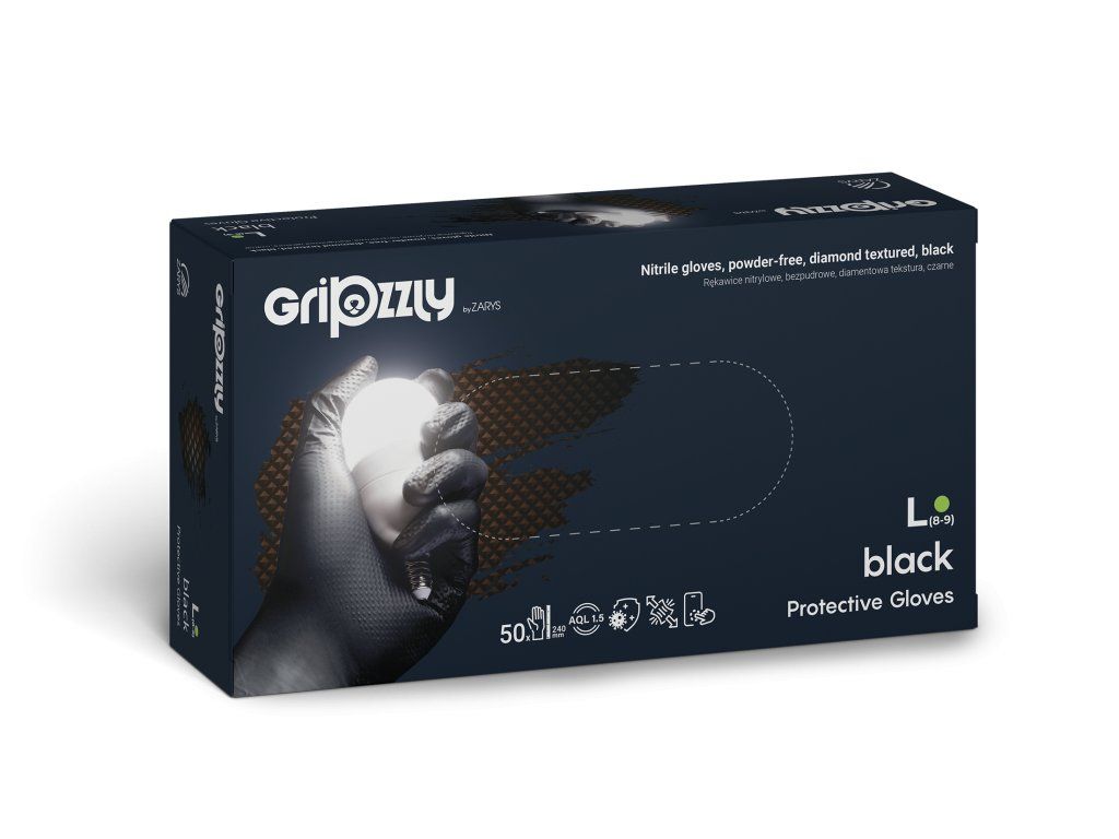 GRIPZZLY – rukavice nitrilové, bezpúdrové, s diamantovou štruktúrou, čierne