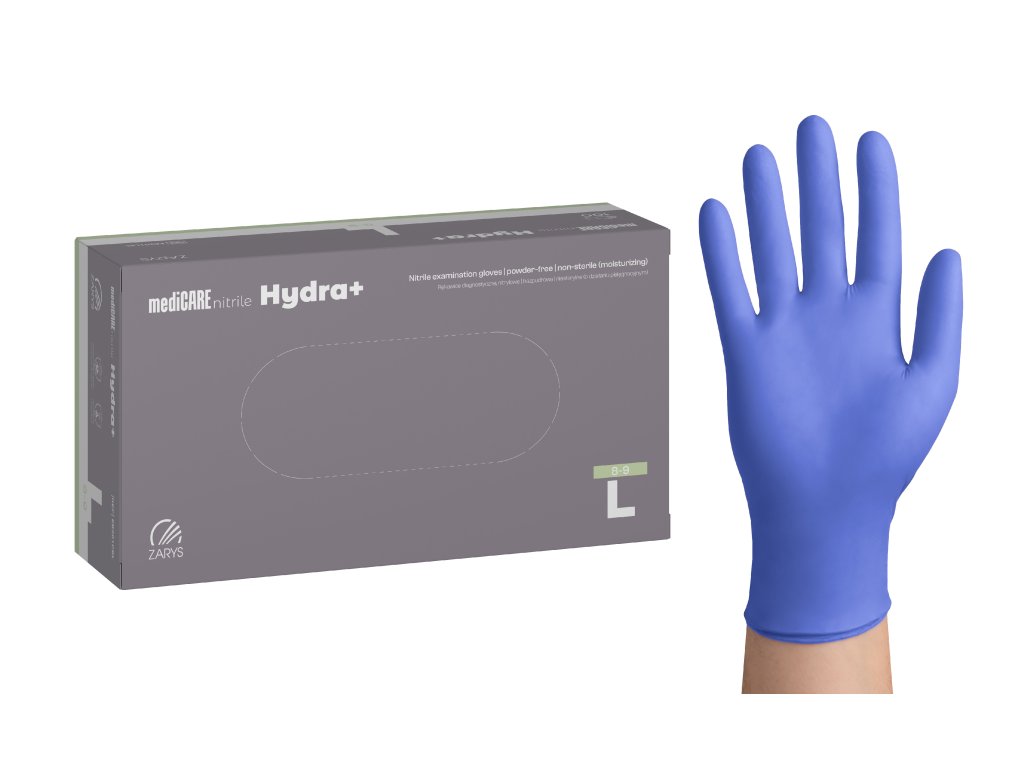 mediCARE nitril Hydra+ – jednorazové rukavice, nitrilové, bezpúdrové